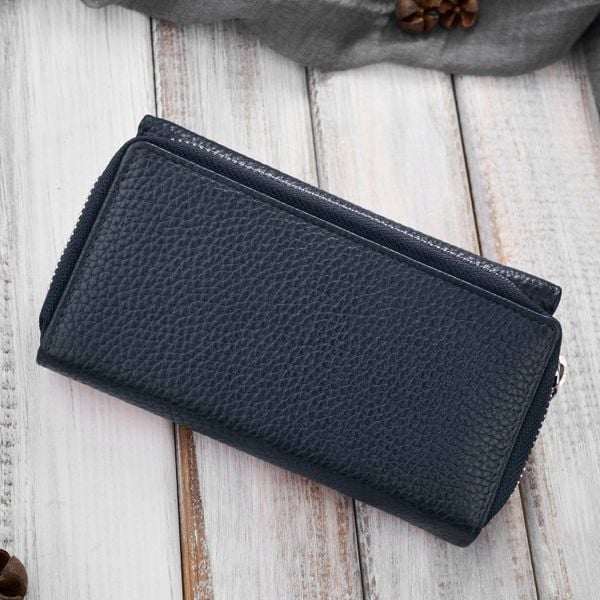 Paolo Peruzzi Portfel damski skórzany duży granatowy z ochroną RFID T-140-NV