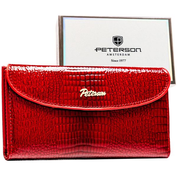 Czerwony, poziomy portfel damski wykonany z lakierowanej skóry ekologicznej - Peterson