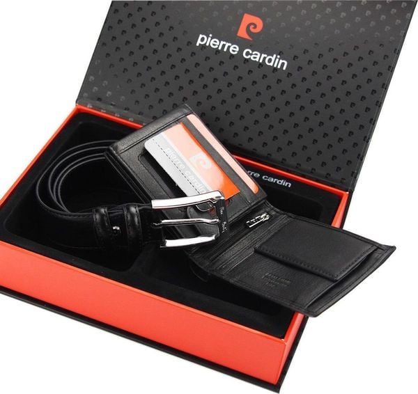 Zestaw Prezentowy Męski Portfel Pasek Skórzany Pierre Cardin Czarny NoSize