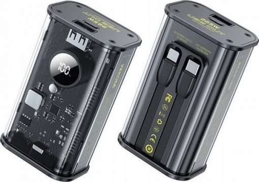 Powerbank Wekome Power bank 10000 mAh Fast Charging z wbudowanym kablem USB-C & Lightning PD 20W + QC 22.5W Czarny