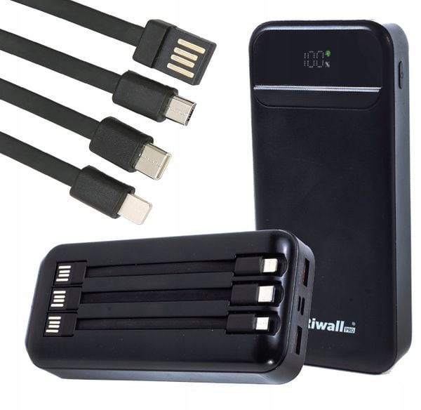 POWERBANK 20000 mAh 22,5W QC PD USB USB-C SZYBKI MOCNY + KABLE RIWALL RY-01