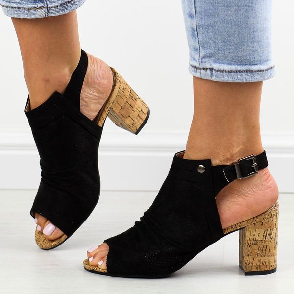 Sandały damskie na słupku:są pełnowartościowe w I gatunkusą staranie wykonane i odznaczają się wysoką trwałościąobcas: 8 cm Kolor: Czarny Obcas i podeszwa przypomina z wyglądu korekButy są bardzo lekkie GWARANCJA na 12 miesięcy