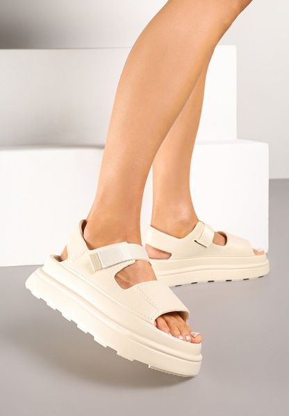 Beżowe Sandały Chunky z Pianki na Platformie Zapinane na Rzep Oballia