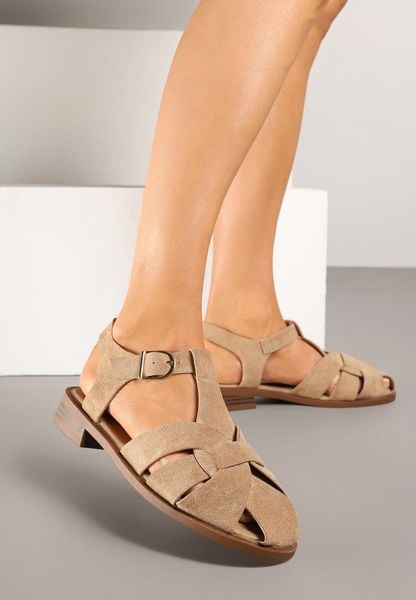 Ciemnobeżowe Sandały w Stylu Gladiatorek z Imitacji Zamszu Kolinella