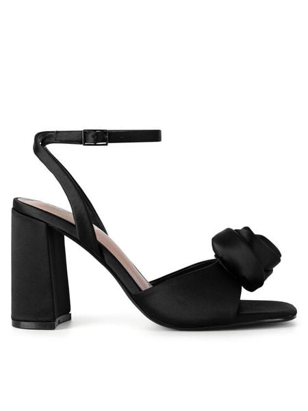 Czarne Sandały na Wysokim Słupki i Niskiej Platformie z Kwadratową Sprzączką Ismerie