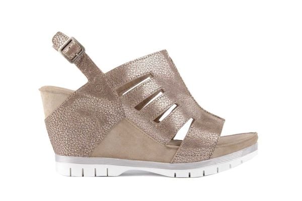 Sandały marki Bayla. Beżowa kolorystyka bardzo ładnie skomponuje się z letnimi strojami. Koturny zostały tak wyprofilowane aby zapewnić stopom wygodę przez cały dzień.- połączenie skóry naturalnej i nubuku- miękka wkładka- zapinane na klamerkę- antypoślizgowa podeszwa- wygodne koturny