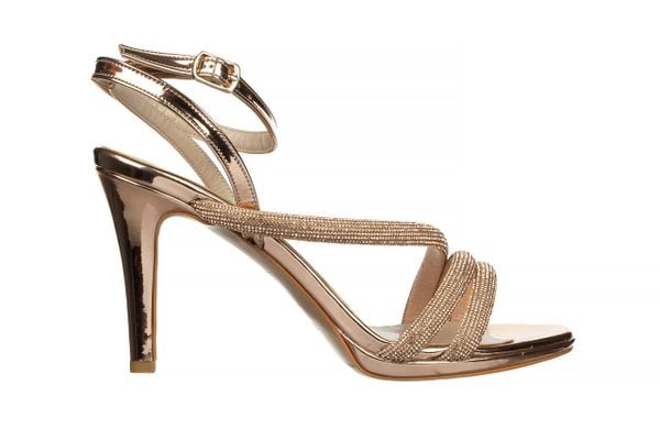Sandały marki Bayla wykonane ze skóry ekologicznej w kolorze różowego złota, lakierowane. Buty są lekkie, wygodne i pięknie prezentują się na nodze. Złoty kolor paseczków w połączeniu z delikatnymi pięknie mieniącymi się kamyczkami nadaje im wyjątkowego, kobiecego charakteru i przyciąga wzrok. Połączenie trzech przednich pasków na przodzie sprawia, że buty dobrze trzymają stopę. Paski od […]