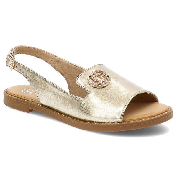 Sandały damskie Filippo, z eko skóry z ozdobą na płaskim obcasie na sprzączkę, złote, DS3666-25-GO