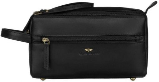 Skórzana, czarna listonoszka męska na złoty suwak w zestawie z saszetką PTN 704E-OPU Peterson