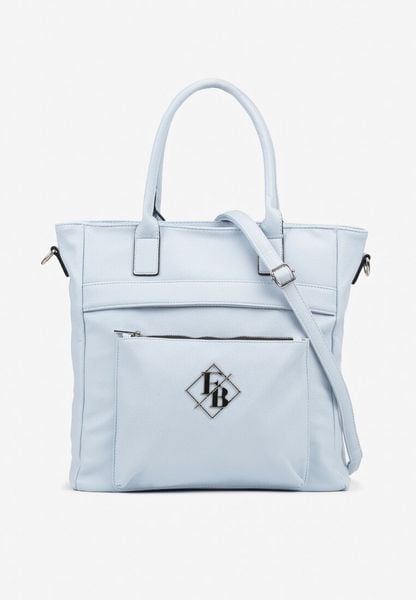 Niebieska Torebka Shopperka z Metaliczną Aplikacją i Dodatkowym Paskiem na Ramię Idalenna