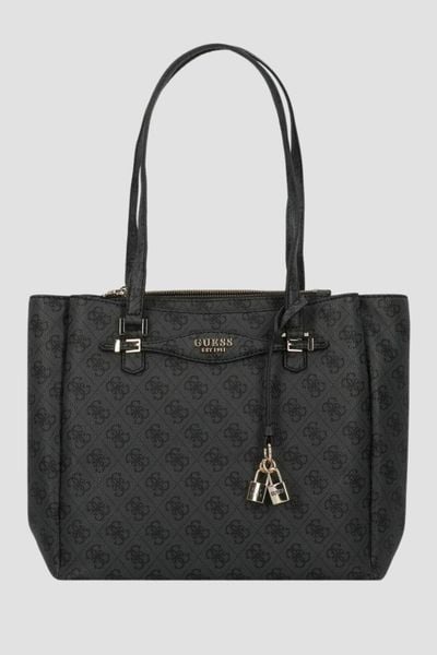 Czarna torebka damska marki Guess, wykonana ze skóry ekologicznej. Posiada jedną dużą komorę , zamykaną na suwak oraz zewnętrzną kieszeń na zamek. W zestawie znajduje się worek przeciwkurzowy.