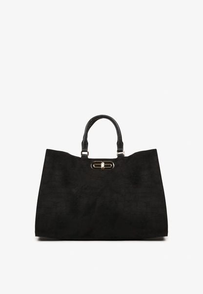 Czarna Torebka Shopperka z Imitacji Zamszu z Rączkami i Paskiem na Ramię Tamelle
