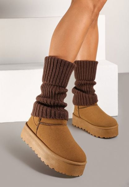 Brązowe Skarpety Getry Ozdobione Wywinięciem Ilarael