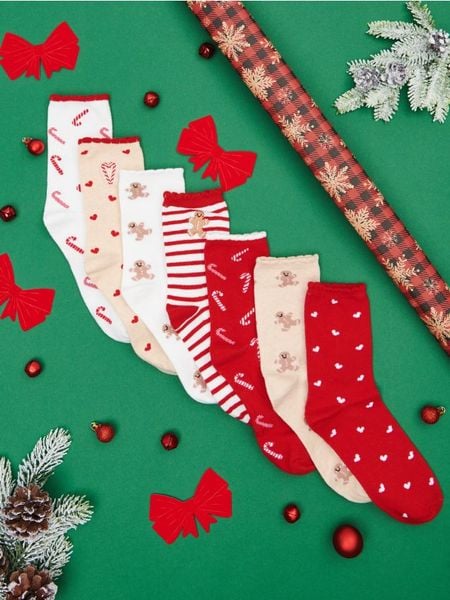 Sinsay – Skarpetki 7 pack – wielobarwny – 7 pack,różne wzory i kolory w zestawie,świąteczny motyw