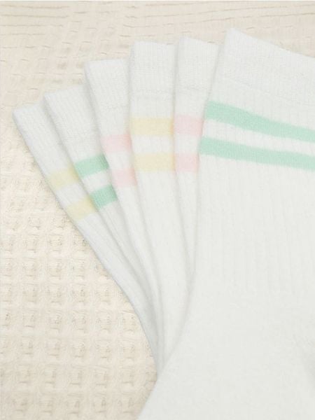 Zestaw 3 par prążkowanych skarpetek z ozdobnymi, kolorowymi paskami.