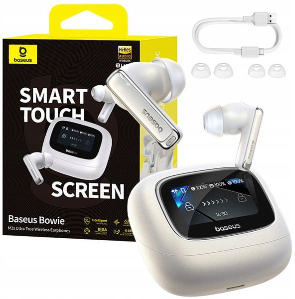 Słuchawki Baseus Słuchawki Bowie M2s Ultra TWS bezprzewodowe dokanałowe z interaktywnym ekranem – białe