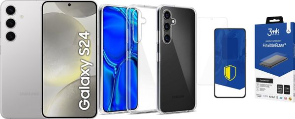 Smartfon Samsung Galaxy S24 5G 8/256GB Szary (SM-S921BZA) + FlexibleGlass + Etui Clear Case