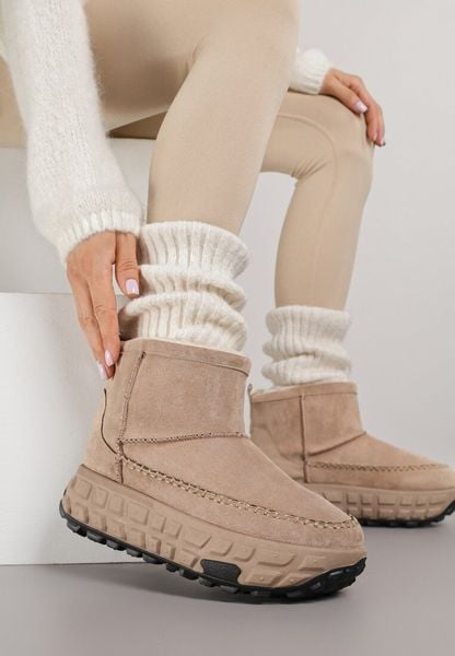 Ciemnobeżowe Śniegowce na Grubej Tłoczonej Podeszwie Apenella