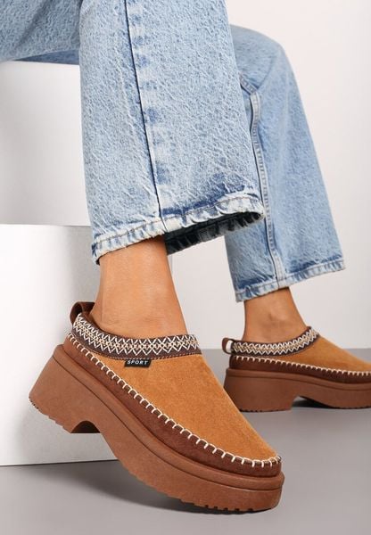 Jasnobrązowe Ekozamszowe Śniegowce na Platformie z Futrzanymi Wstawkami Mazini