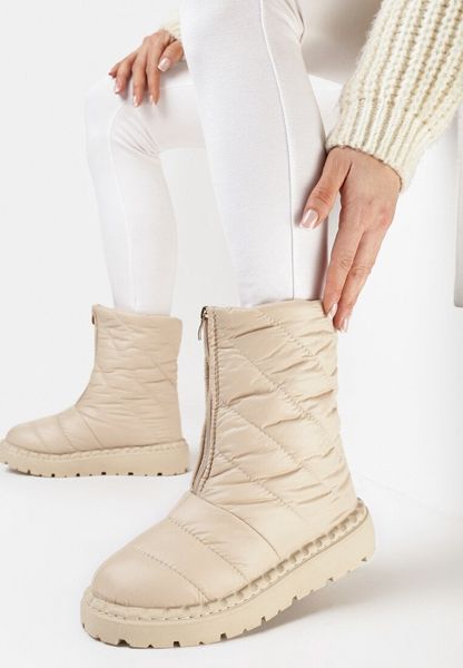 Beżowe Pikowane Śniegowce za Kostkę z Suwakiem z Przodu Fioni