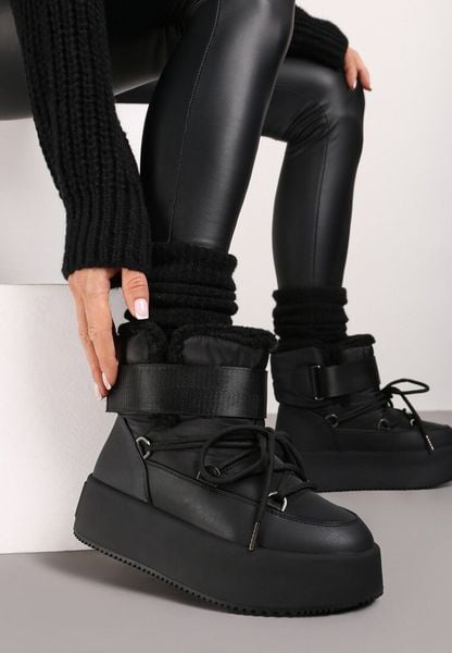 Czarne Śniegowce na Platformie Ocieplone Futerkiem z Zapięciem na Rzep Soriva