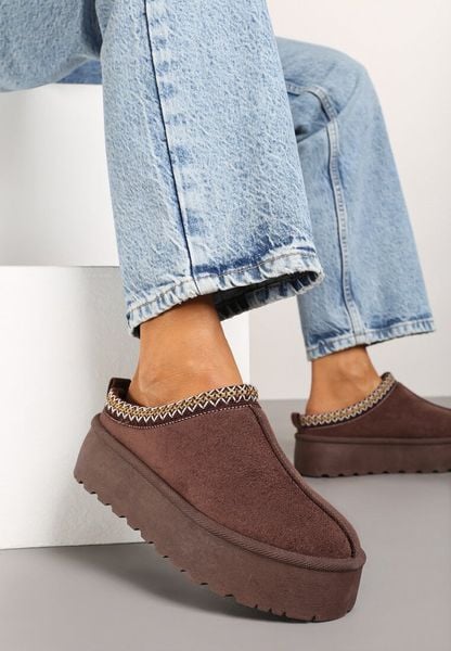 Brązowe Śniegowce VICES na Grubej Podeszwie z Haftem i Skarpetkową Cholewką Enantia