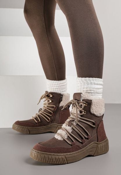 Brązowe Sznurowane Śniegowce z Futerkiem Typu Baranek Mevesalia