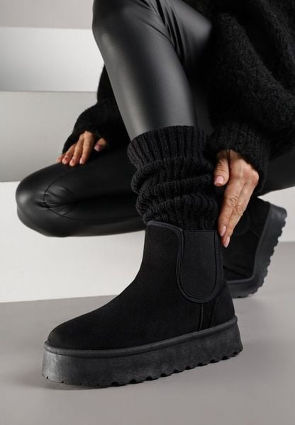 Czarne Śniegowce na Grubej Podeszwie w Stylu Sztybletów Avrenna