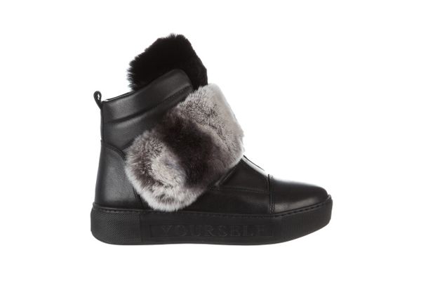 Czarne Śniegowce Typu Sneakersy ze Skóry Naturalnej Wyściełane Futerkiem Venalise