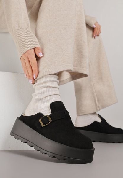 Czarne Śniegowce na Grubej Podeszwie z Niską Cholewką i Ozdobną Klamerką Vetibela