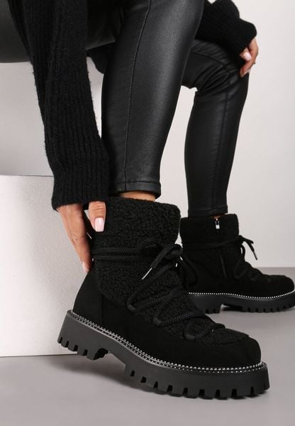 Czarne Śniegowce na Grubej Podeszwie z Cyrkoniami i Futerkową Wstawką Rianaella