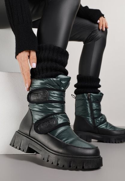 Ciemnozielone Śniegowce na Rzepy i Grubej Podeszwie Cashel