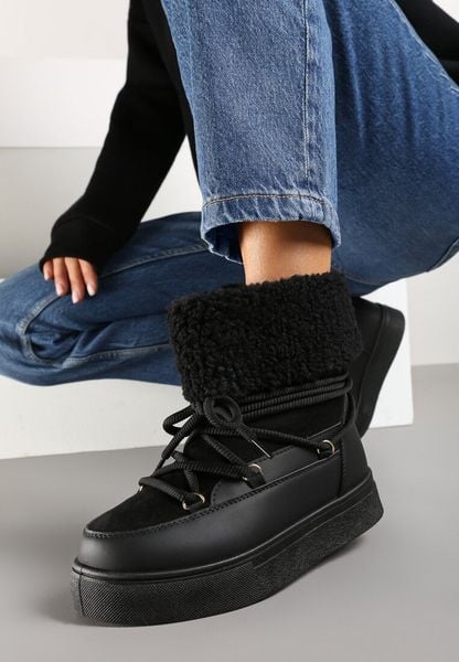 Czarne Śniegowce na Grubej Podeszwie ze Sznurowaniem i Futerkiem Izantea