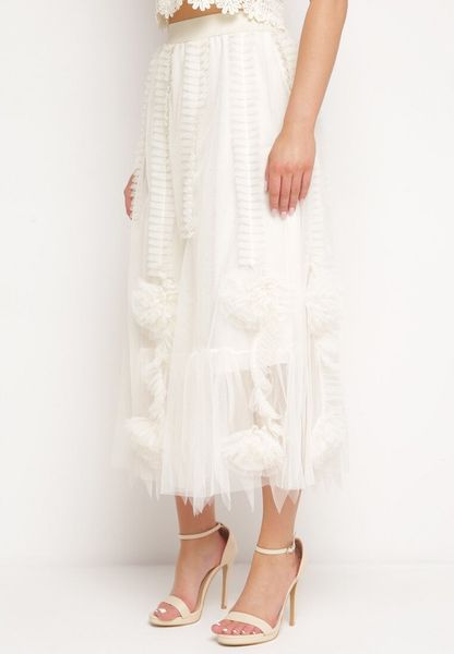 Jasnobeżowa Spódnica o Rozkloszowanym Kroju z Transparentnym Tiulem i Falbankami Asmerra
