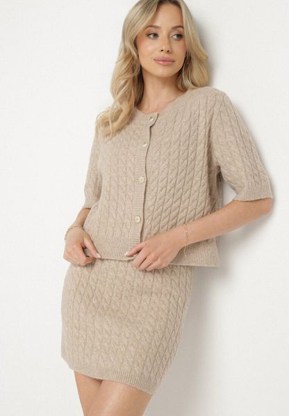 Beżowa Sweterkowa Spódnica z Wełną i Wysokim Stanem Milzekia
