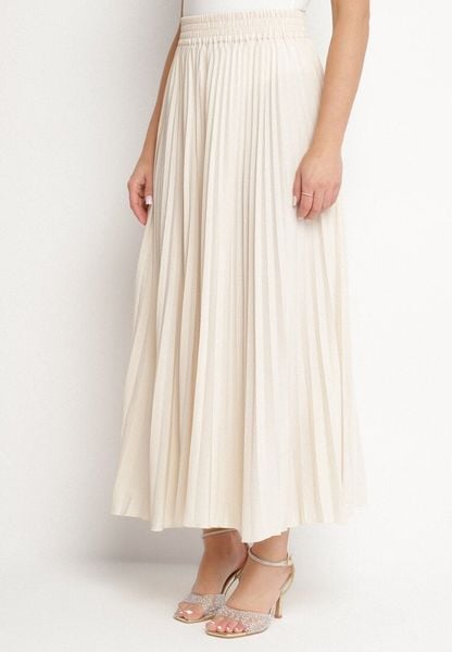 Jasnobeżowa Spódnica Plisowana o Rozkloszowanym Kroju z Gumką w Talii Sarlimi