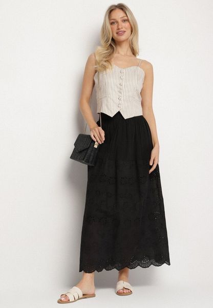 Czarna Bawełniana Spódnica Ażurowa Rozkloszowana Divora
