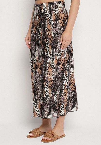 Szaro-Beżowa Wiskozowa Spódnica z Wysokim Stanem i Abstrakcyjnym Wzorem Rinalisa