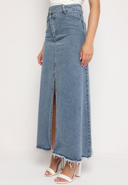 Jeansowa spódnica Hayva o długości maxi. W pasie wysoki stan, guzik i klasyczny suwak. Wsuwane kieszenie z przodu i z tyłu. Wyróżnia się postrzępionym dołem i rozporkiem. Świetnie sprawdzi się w wielu stylizacjach.