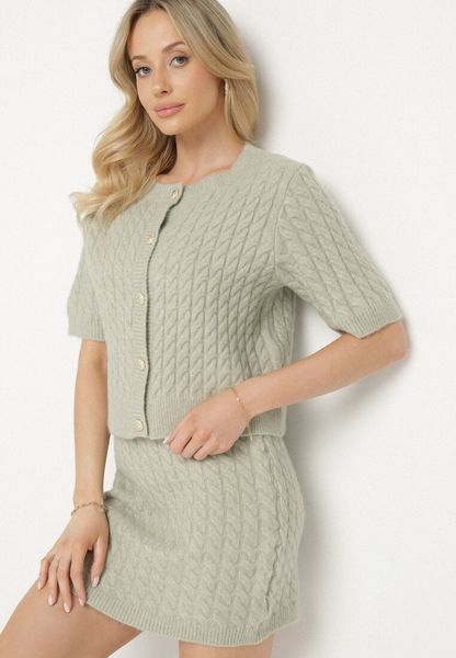 Jasnozielona Sweterkowa Spódnica z Wełną i Wysokim Stanem Milzekia