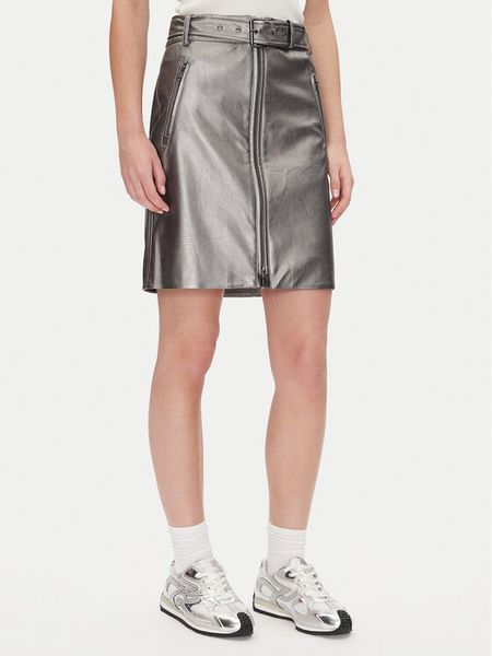 DKNY Spódnica z imitacji skóry P4JN6XIM Srebrny Regular Fit