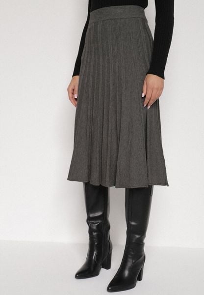 Ciemnoszara Rozkloszowana Plisowana Spódnica Dzianinowa Tussana