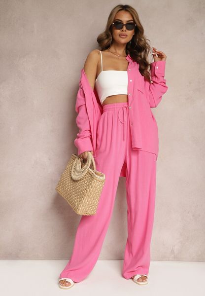Ciemnoróżowe Szerokie Spodnie z Wiskozy z Dodatkiem Lnu Delsira