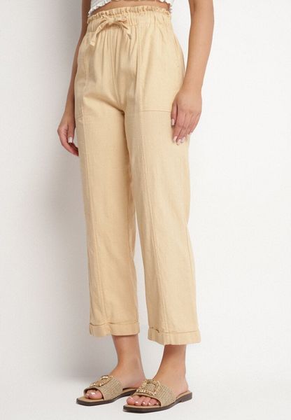 Jasnobeżowe Bawełniane Spodnie z Wysokim Stanem i Ozdobnym Wiązaniem Vilwia
