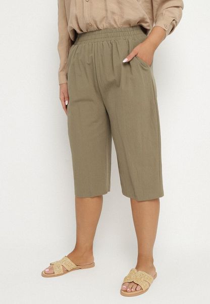 Zielone Luźne Spodnie z Bawełny z Wysokim Stanem 3/4 Lumelle
