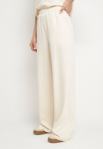 Beżowe Szerokie Spodnie z Wiskozą Zdobione Cyrkoniami Zeonaria