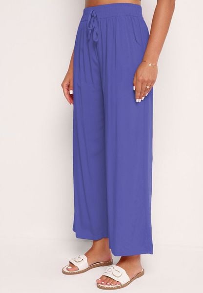 Niebieskie Bawełniane Szerokie Spodnie Palazzo z Wysokim Stanem i Gumką w Pasie Nellsie