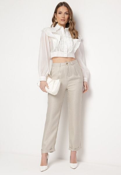 Beżowe Spodnie z Drobną Pepitkę w Garniturowym Stylu Eldankia