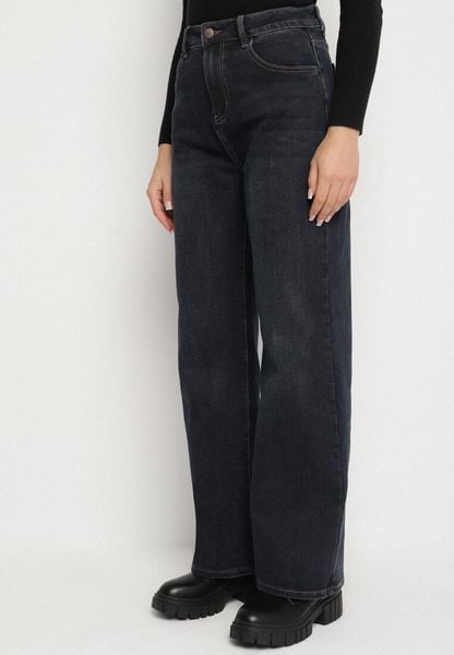 Granatowe Szerokie Jeansy z Dodatkiem Wiskozy z Wysokim Stanem Zenoa