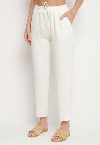 Białe Spodnie Wiązane Troczkiem w Pasie ze Zwężającymi się Nogawkami Starila